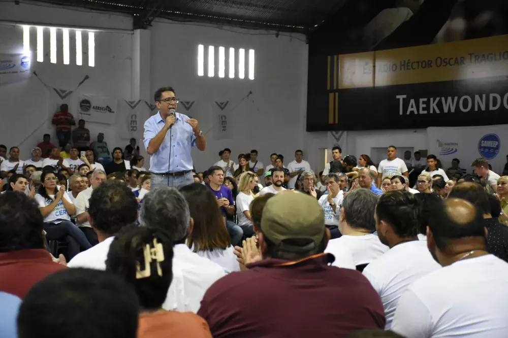 Gustavo Martínez presenta su candidatura a gobernador de Chaco, en un acto en el club Maracaibo de Sáenz Peña. Reafirma el compromiso de lograr políticas públicas que hagan frente a las demandas de la gente.